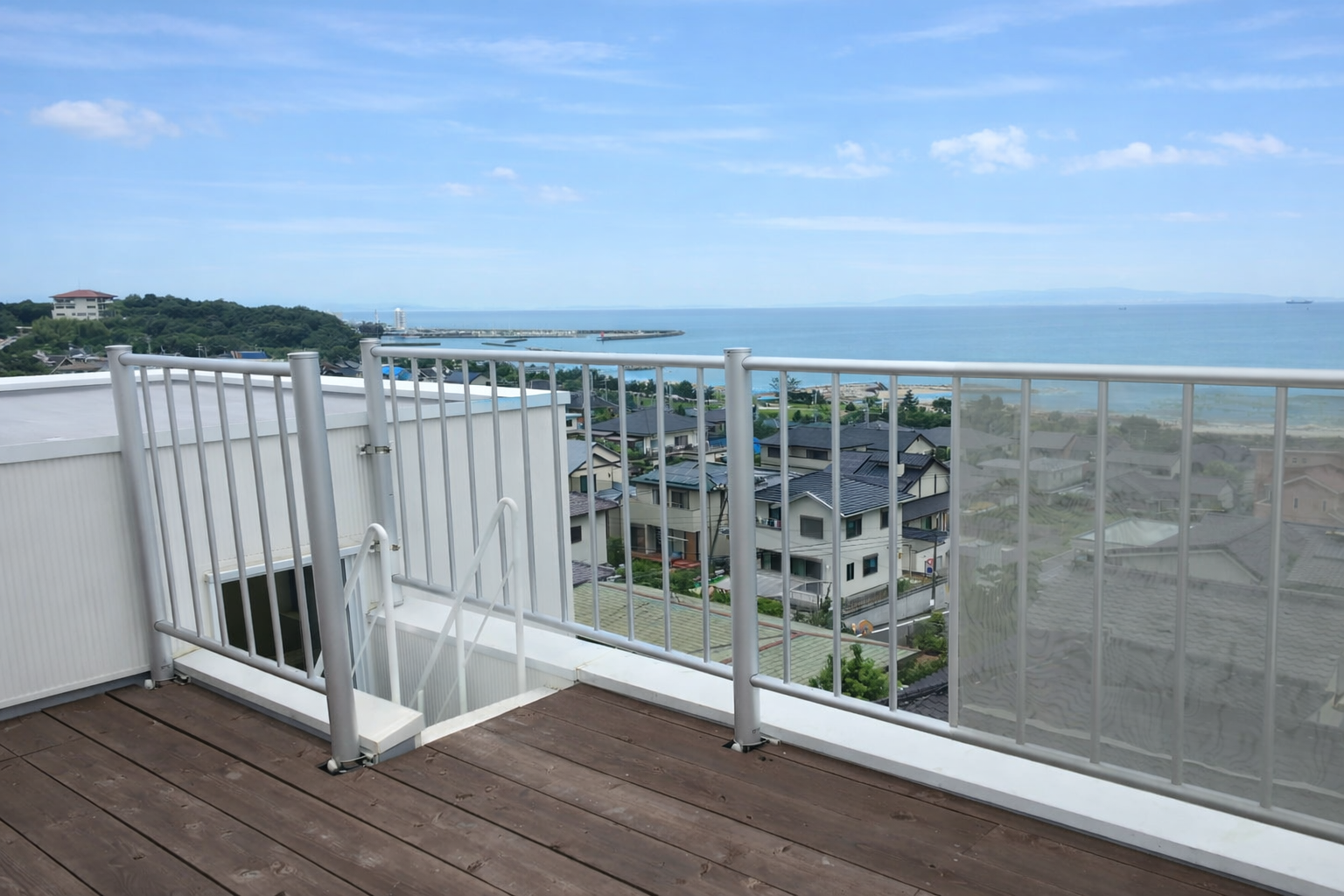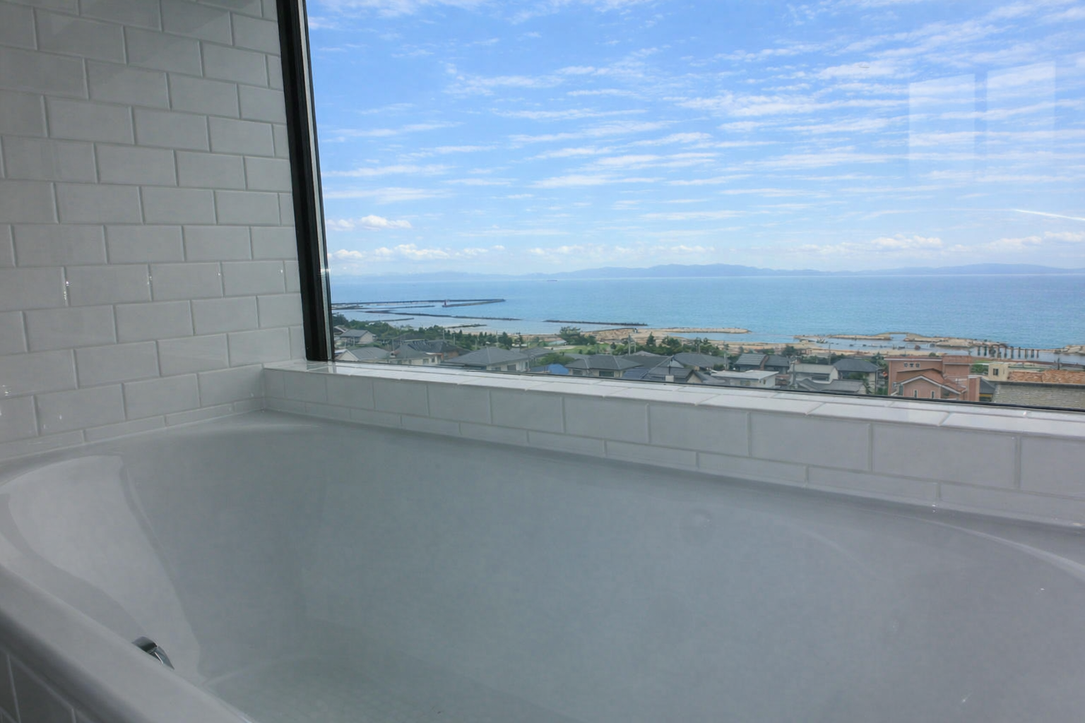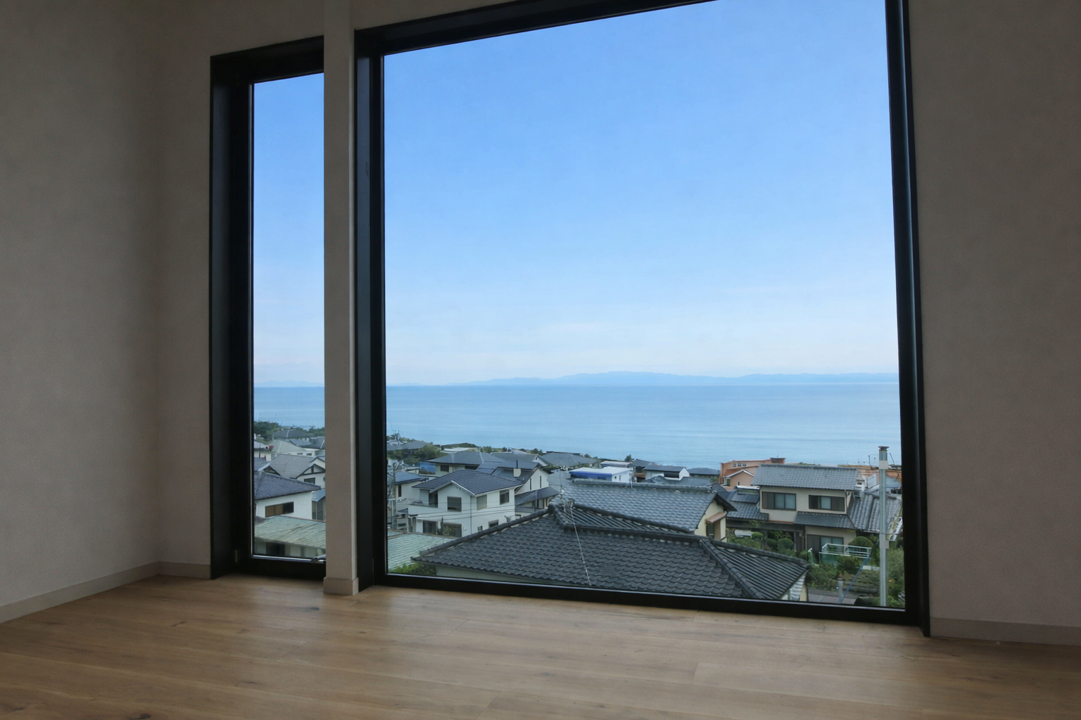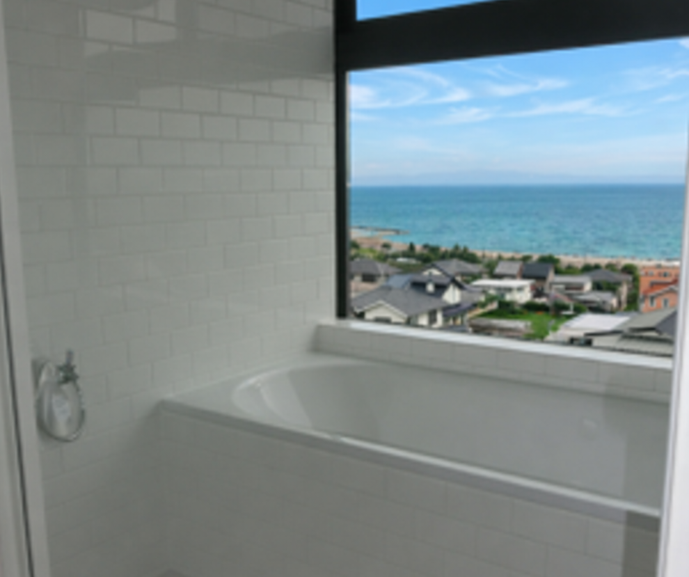 水平線と暮らす家。絶景の屋上テラスと、夕日に染まる在来工法バスルーム