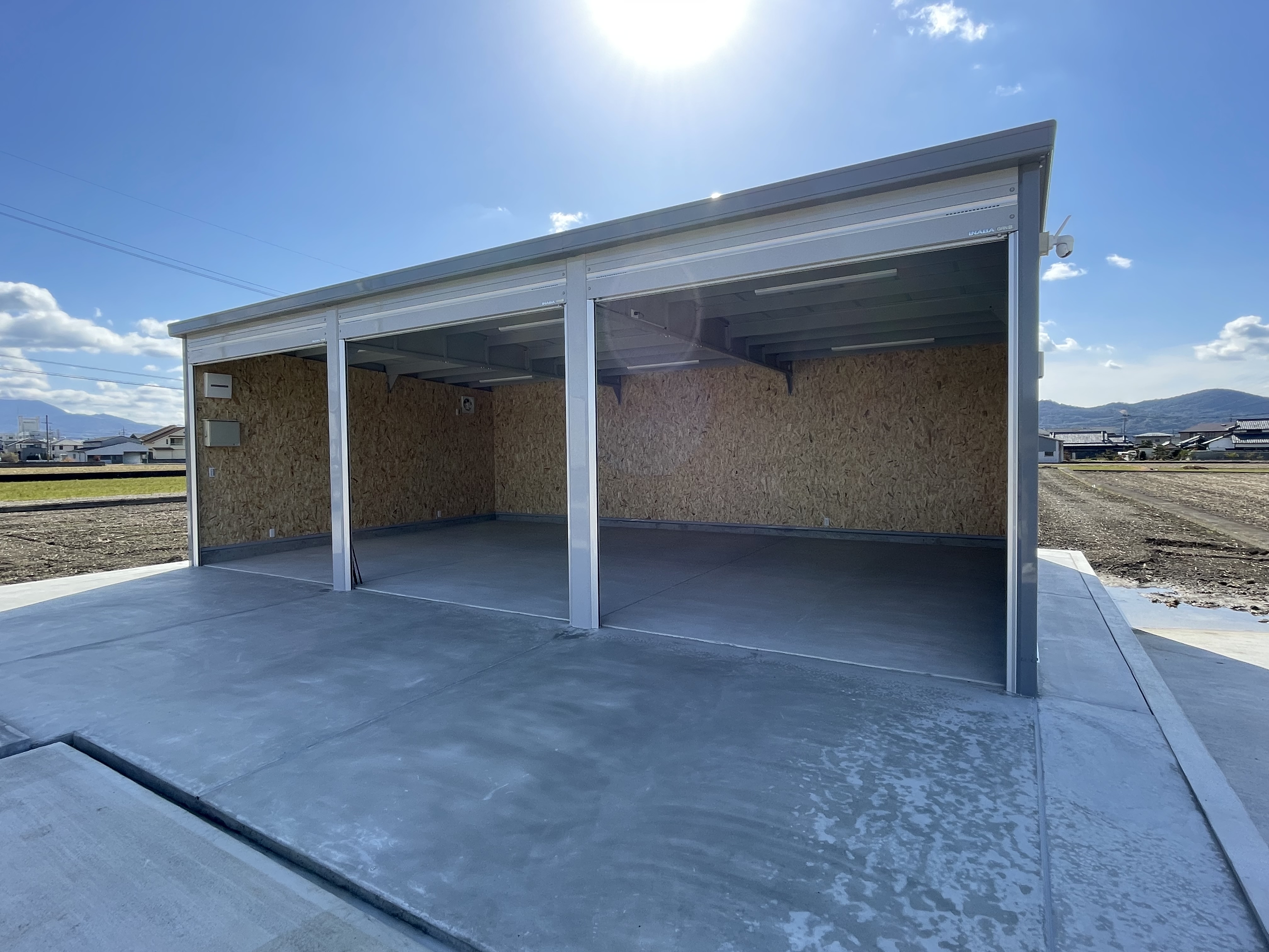当初からこの場所にガレージを設置する明確な計画をお持ちだった施主様。 単なる土地活用ではなく、日々の農作業を支え、大切な機材を守るための「実用的な空間」が求められていました。