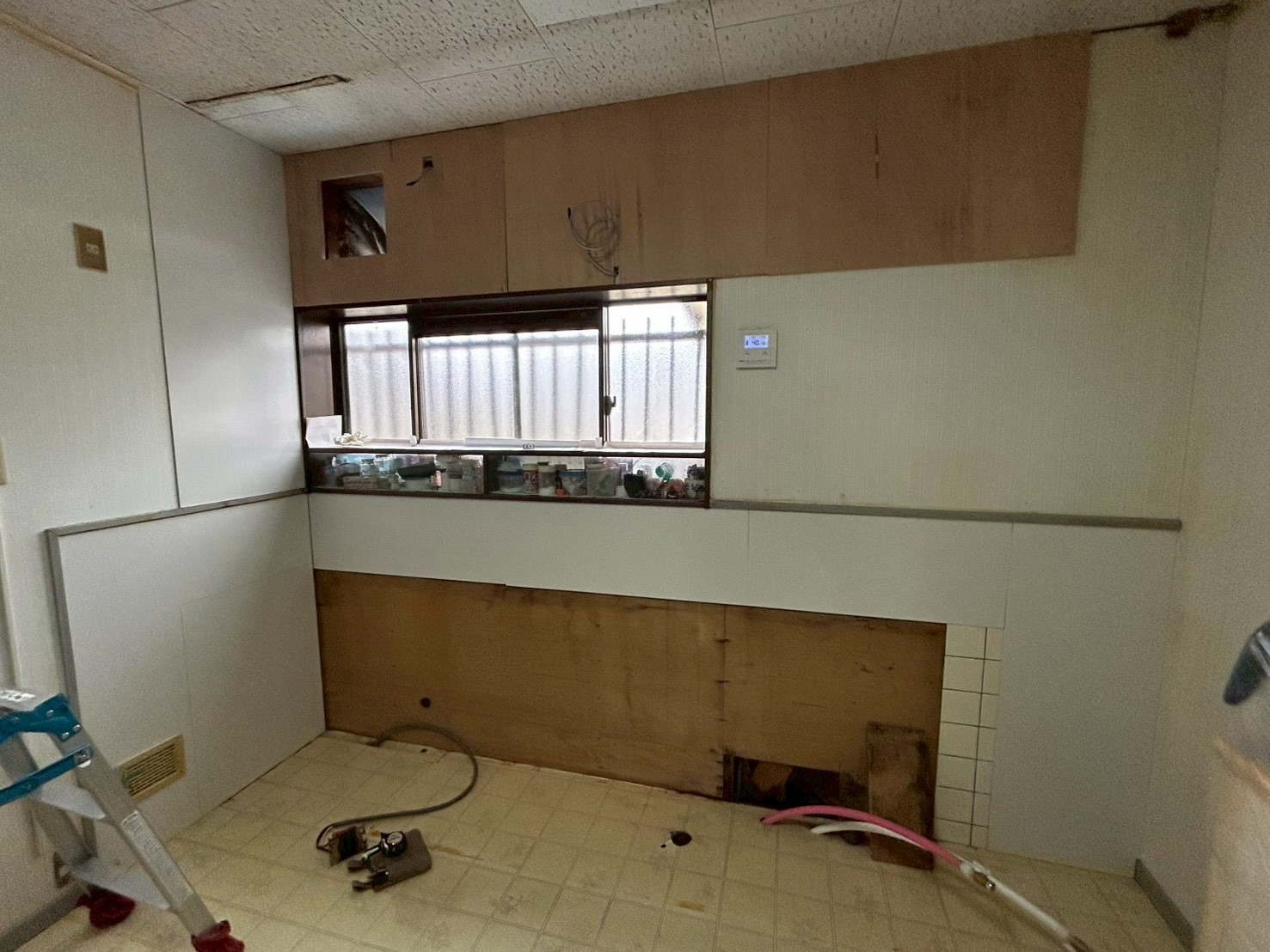 長年使用されていた流し台の下部で水漏れが確認されたため、漏水箇所の復旧とあわせて、キッチン全体の入れ替え工事を行うことになりました。