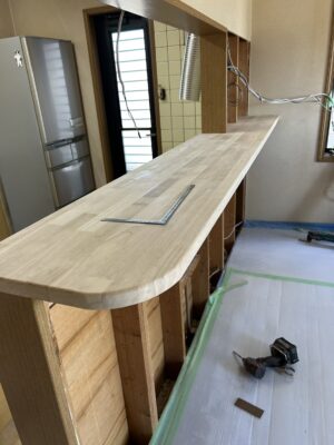 2枚目は、新設する造作カウンターを組んでいるカット。
