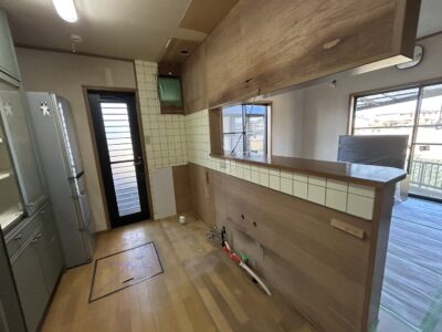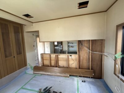 1枚目の写真は、既存の壁やカウンターを解体した直後の様子。
