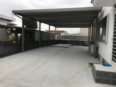 今回は、広々とした敷地を活かし、重厚感のある折板(せっぱ)カーポートと、